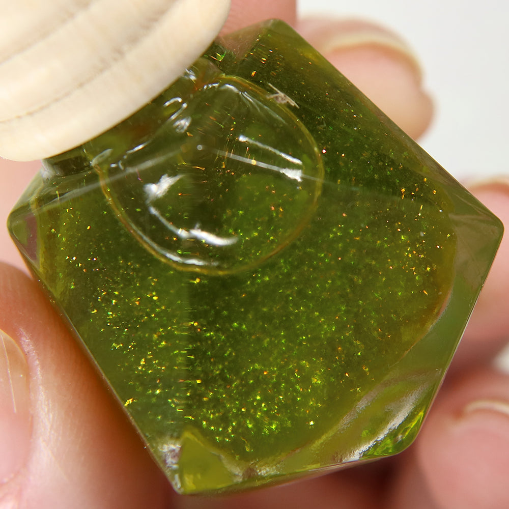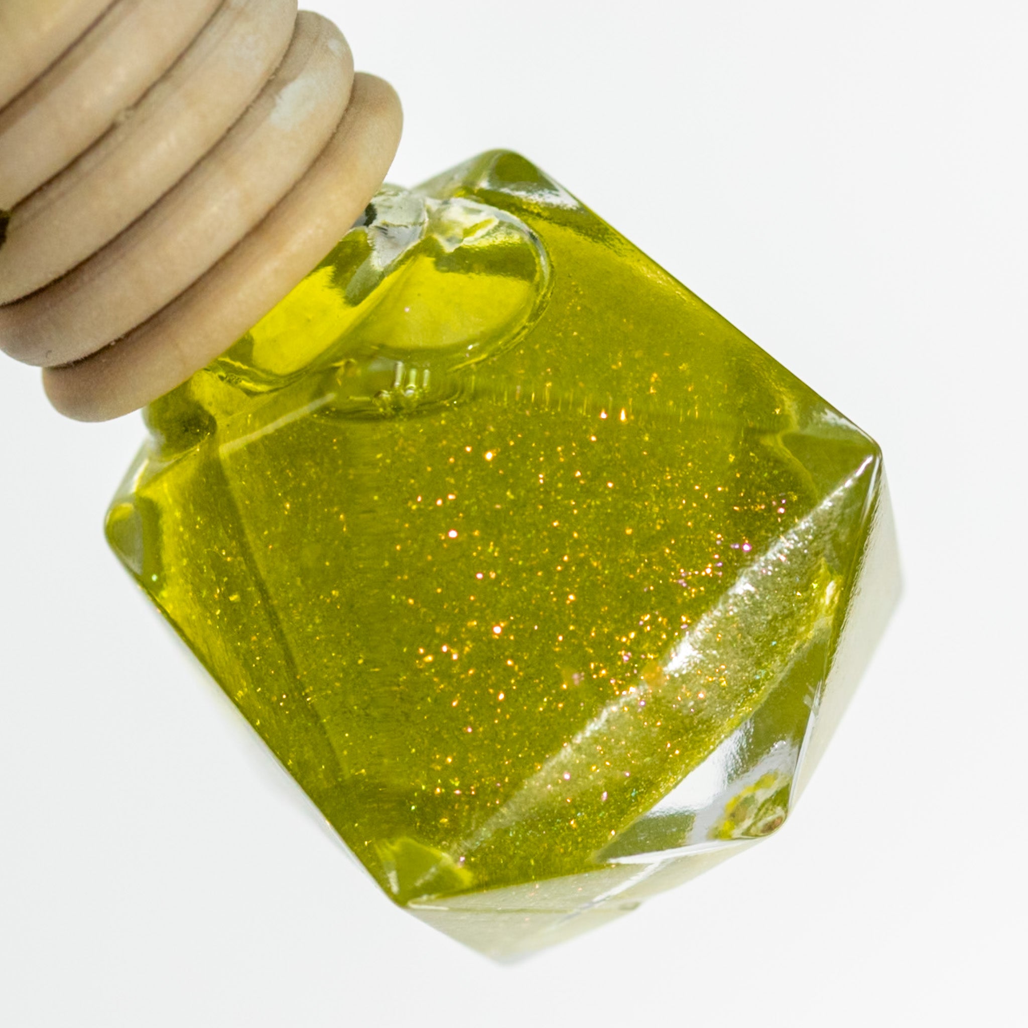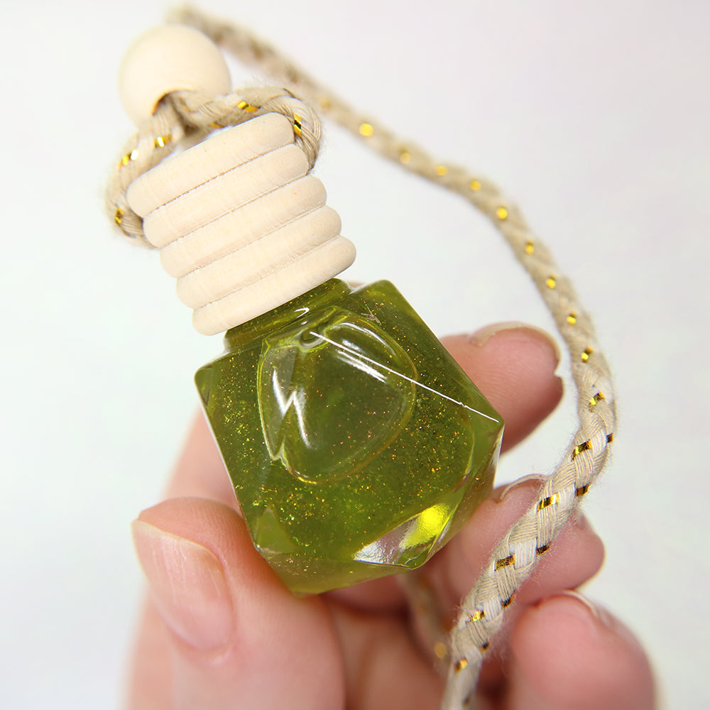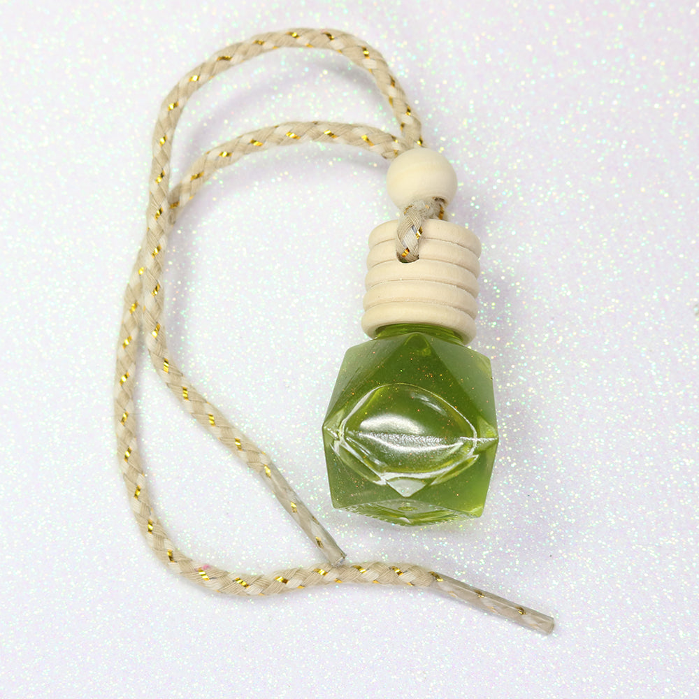 A glass hanging air freshener from Ribbits Stickits! The color and shape of the bottle may differ month to month.